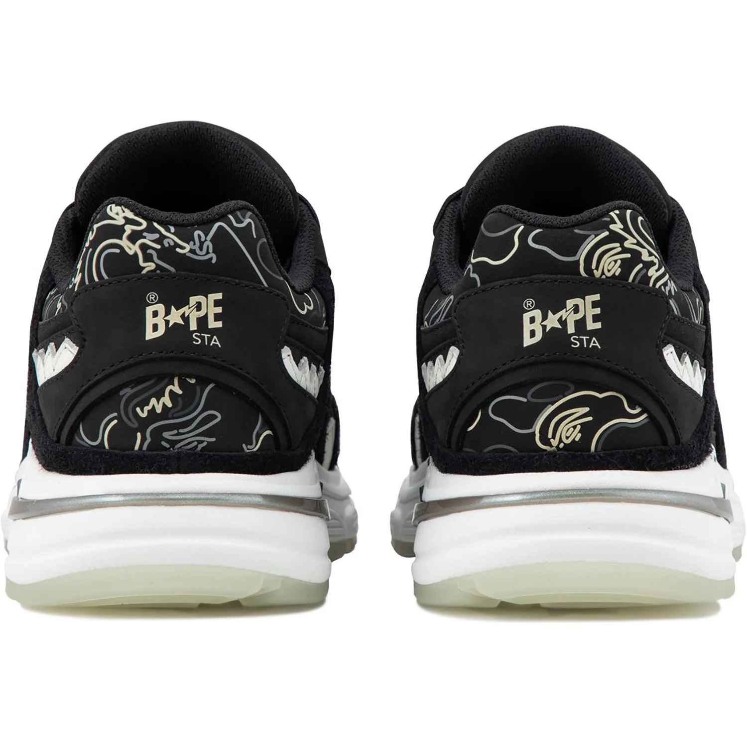 These Shark STA sneakers are available in black featuring glow-in-the-dark featuring eye-catching accents on the sneaker shoe, this design sets you apart with bold style. The collection captures the electric energy of late-night music scenes.